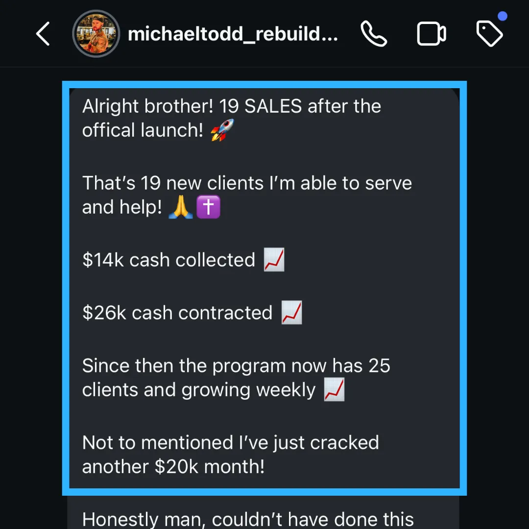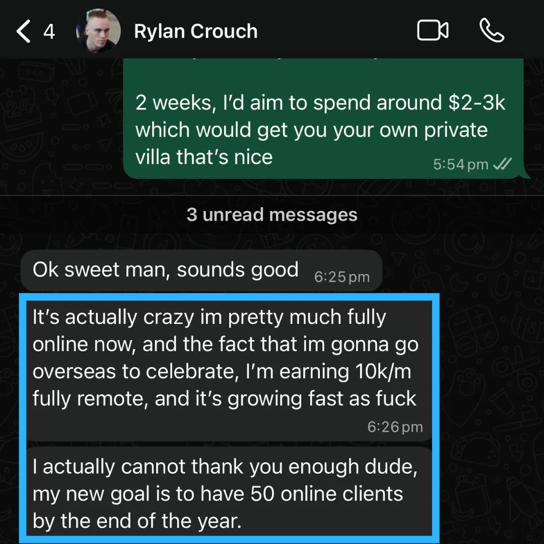 Luke was working 40 hours a week in-person making $1,500/week. He transitioned online with this system, hit $150K in his first year, now consistently does $20K+ months.