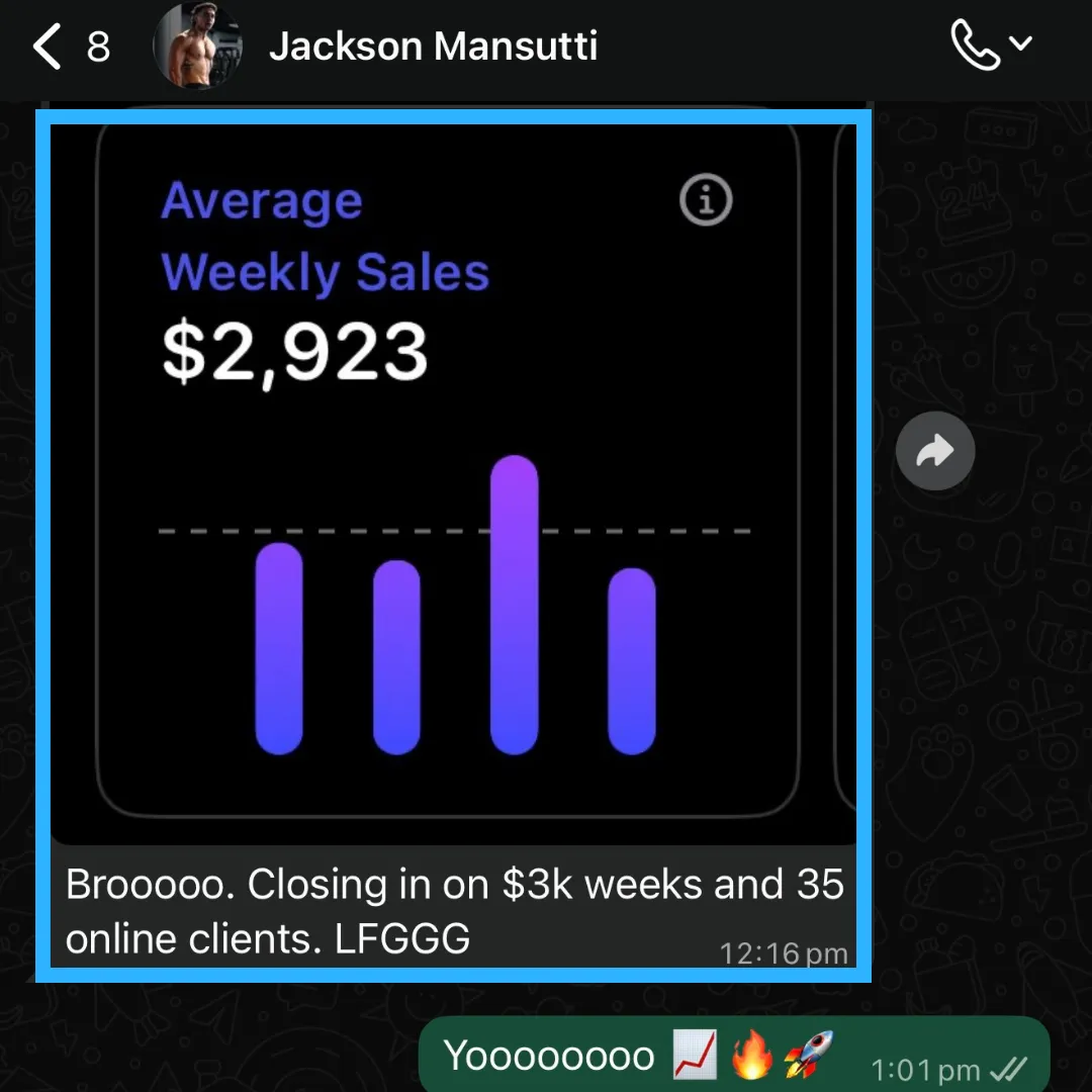 Online fitness coaches doing $5-15K/month who have proven they can get clients and deliver results, but are maxed out on organic content and don't have a systematic way to scale.If you're still trying to figure out if online coaching is "for you" or haven't signed your first client yet, this isn't for you. Come back when you're doing at least $5K/month consistently.