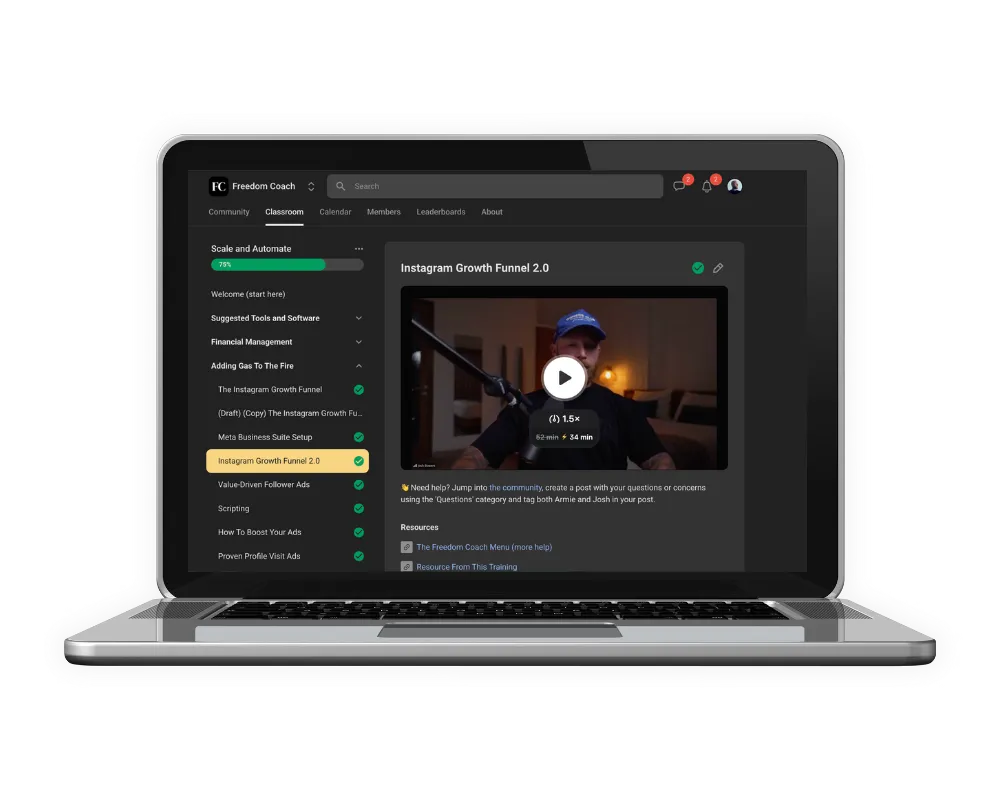 Get support from other coaches at your level building the same system, share wins, troubleshoot problems, and stay accountable inside our private Skool community where everyone's focused on execution.